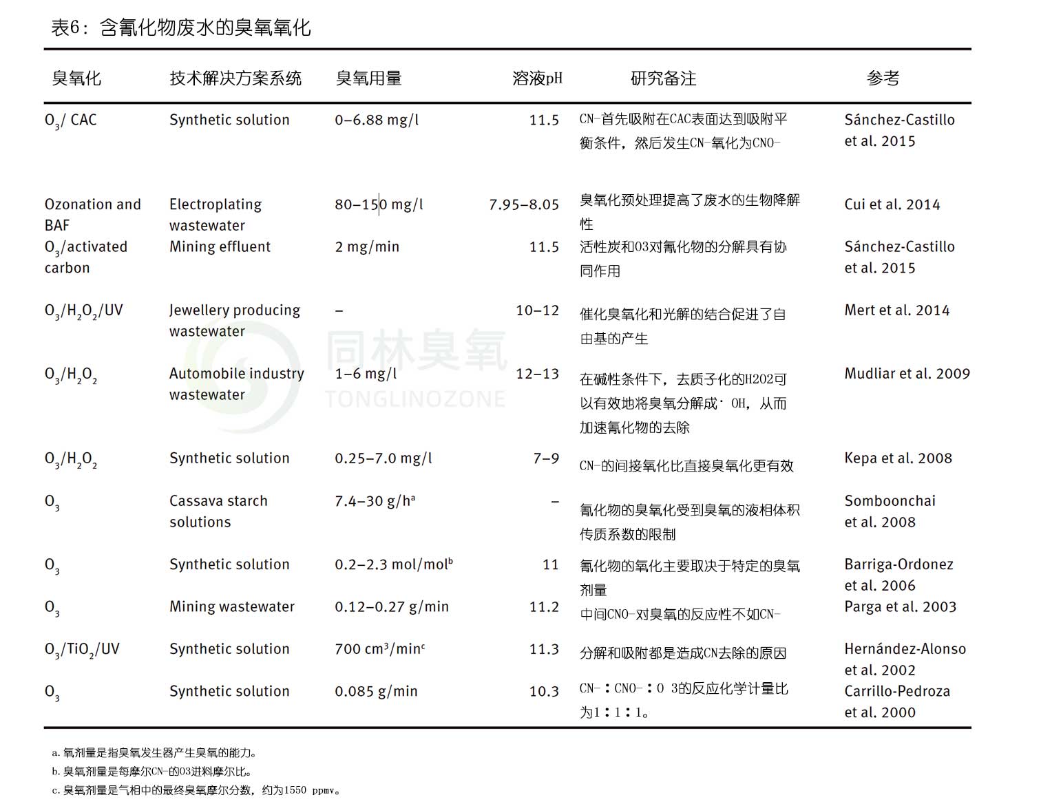 表6總結(jié)了通過催化和非催化臭氧化技術(shù)減少氰化物的研究活動(dòng)。