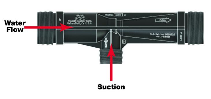 - 切勿限制文丘里管出口,考慮在文丘里管出口處使用比流入更大的管道,因?yàn)楣艿缹⒊錆M水和已吸入文丘里管的添加氣體。